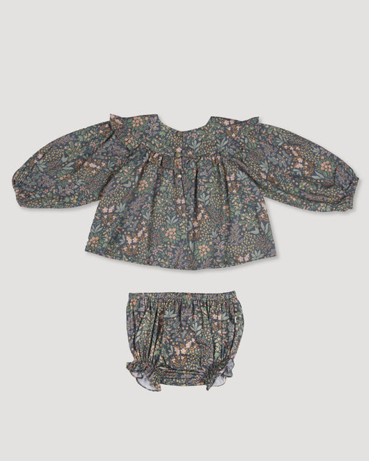 Libby Baby Dress & Bloomer Set - Ditsy Bouquet Jade print