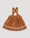 Let your little one twirl in timeless charm with this Anni velvet skirt featuring floral embroidery and playful cross-back straps. Crafted from soft, cozy velvet, this skirt combines comfort with elegance, making it perfect for the cooler seasons. The delicate pink and lavender embroidery along the hem adds a touch of sweetness to every step.