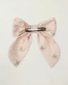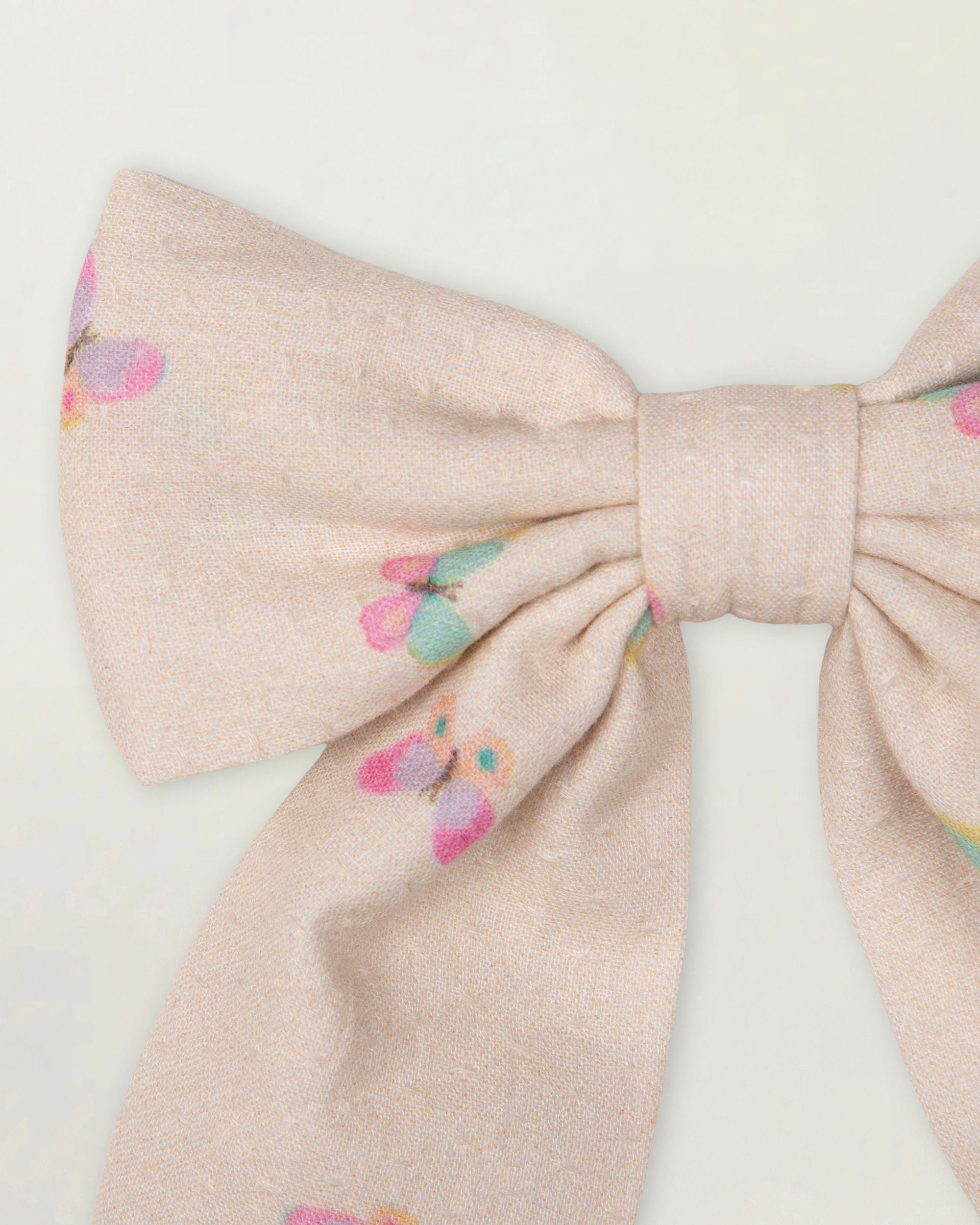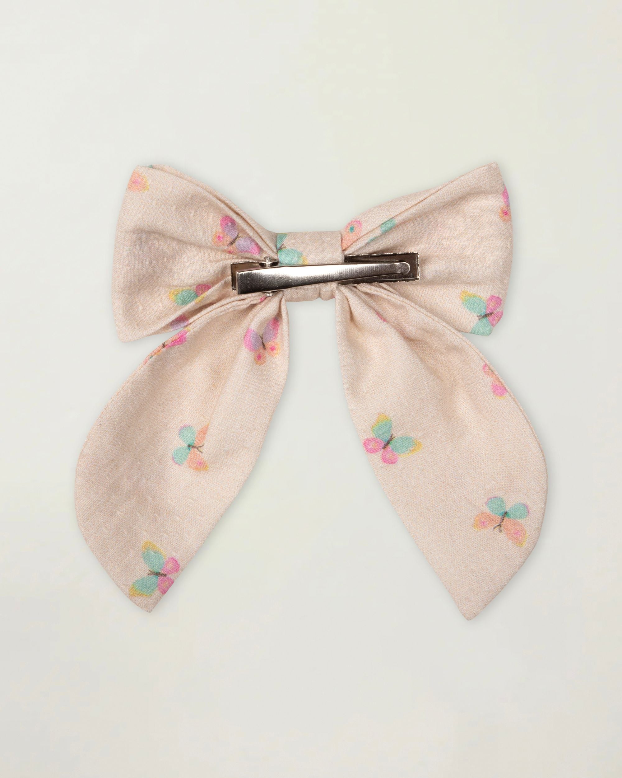 Audrey Clip is a sweet alligator hair clip crafted from soft and breathable fabric, perfect for adding a charming touch to little hairstyles. Made in Printed Cotton Tiny Swiss Dobby, it features the delightful Butterflies print, showcasing playful butterfly motifs for a bright and cheerful look.