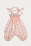 Carefully crafted from airy cotton cambric, the Audrey Smocked Romper features a delightful Fraises print in a subtle pink hue. This romper is perfect for spring and summer, special occasions, and everyday wear.