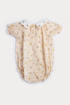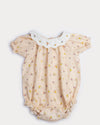 Crafted from airy cotton cambric, the Betty Bubble Romper features a charming tiny flowers print on a light pink hue. Puffed sleeves and an embroidered scallop-shaped collar add a playful touch to every summer moment.