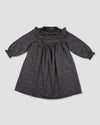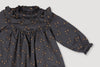The Louise Dress (Ceremonial), crafted from luxurious cotton satin, features a refined stormy blue shade adorned with delicate embroidered stars. This dress combines a smooth, lustrous finish with elegant star detailing, making it a sophisticated choice for special occasions and celebrations.