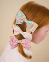 Chiara Clip is a charming alligator hair clip crafted from soft and breathable fabric, perfect for adding an elegant finishing touch to little hairstyles. Made in Organic Printed Cotton Cambric, it features the delicate Emma Floral Purple print, blending soft florals with soothing purple tones for a graceful and coordinated look.