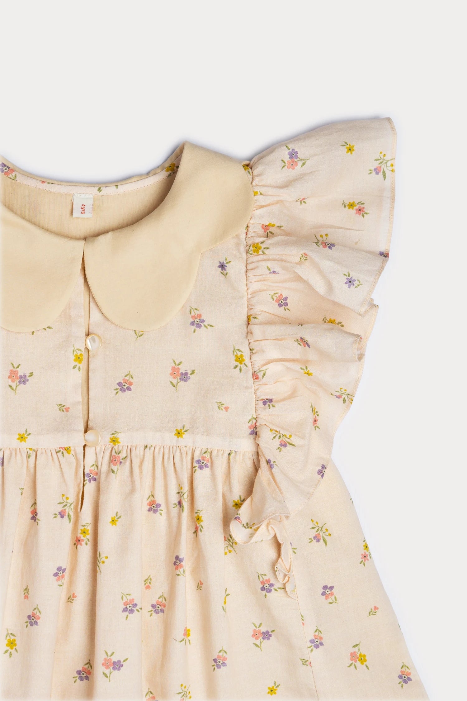 Delicate blooms dance across the Clothilde Dress, crafted from airy cotton cambric. Ruffled sleeves and a twirl-worthy skirt add a touch of whimsy, making this dress perfect for summer adventures and festive occasions.