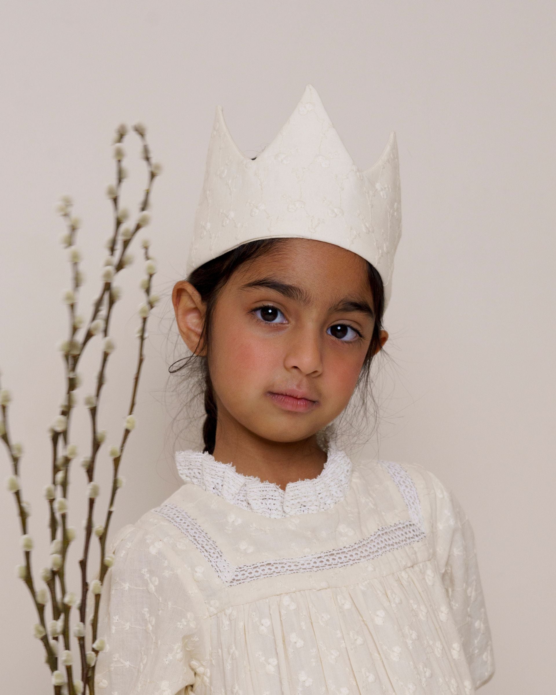 Allover Embroidered Cotton Cambric is a lightweight, finely woven cotton fabric adorned with intricate, allover embroidery. This adds delicate texture and elegance to the soft and breathable base fabric, making it perfect for stylish and comfortable kids’ clothing.