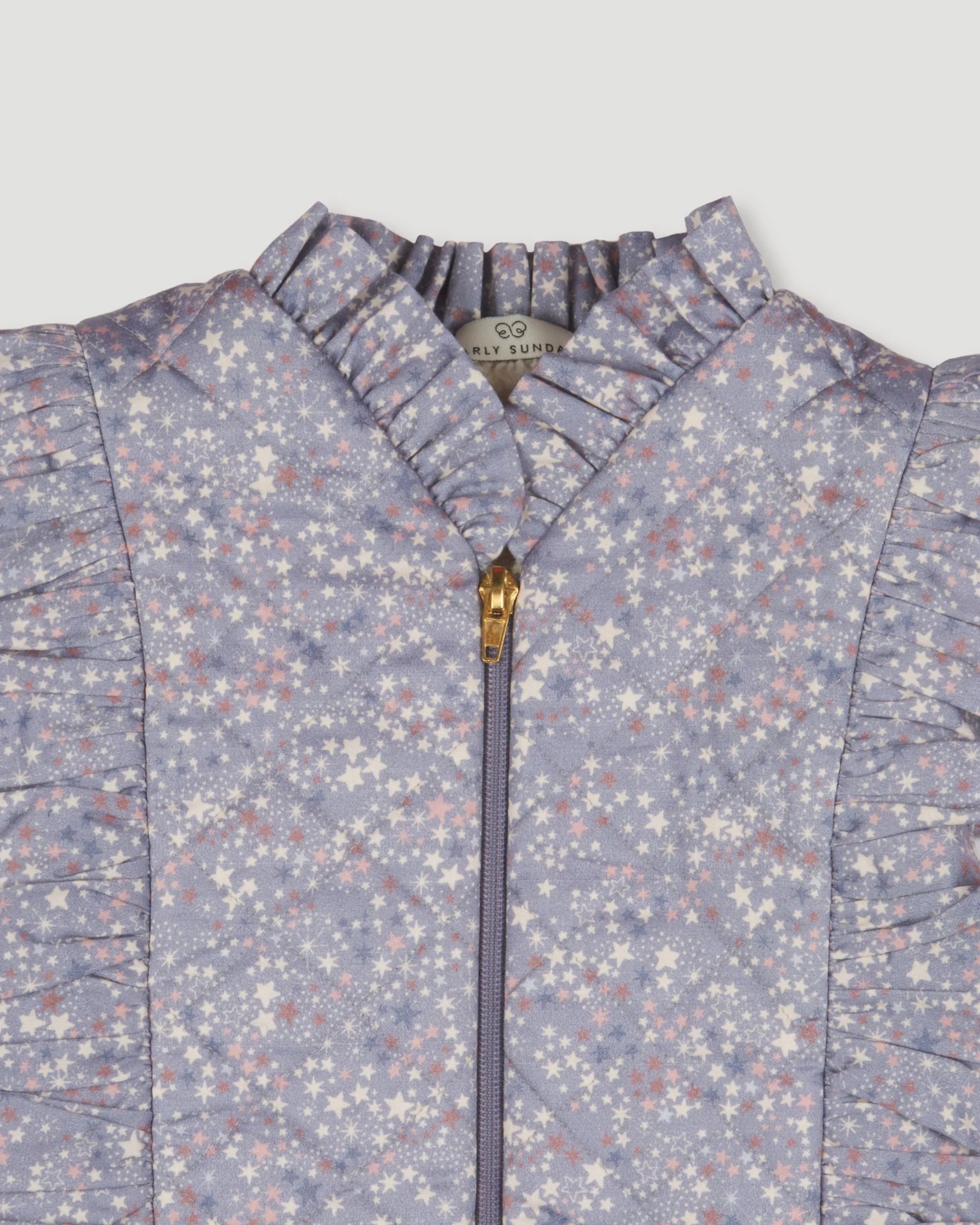 Wrap your little star in cozy charm with our Deborah Jacket, crafted from soft and breathable 30s Cotton Twill. The dreamy Celestial print features scattered stars in soft hues of white and pink against a dusky lilac base, making it a magical addition to your child’s wardrobe.