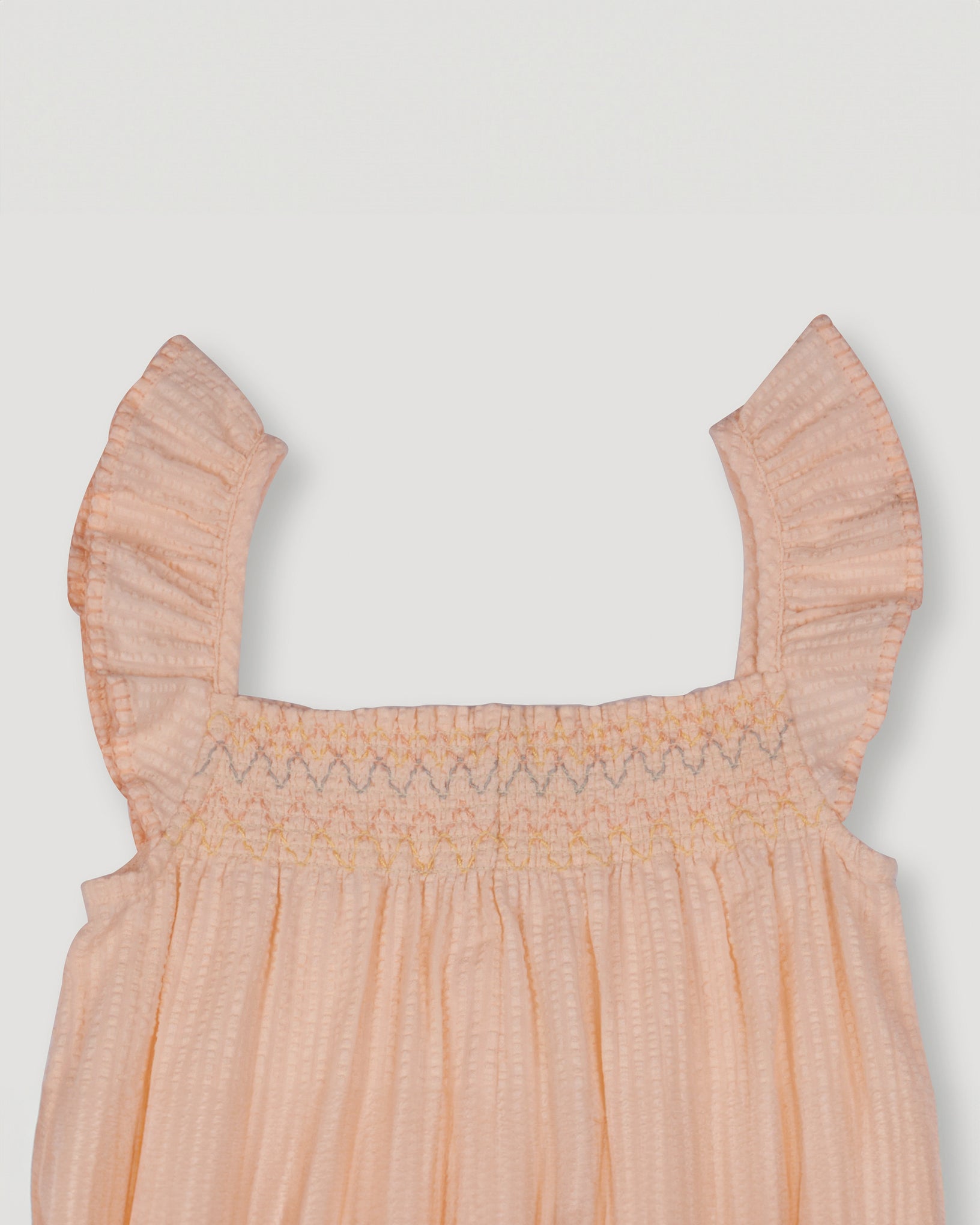 Pattern: Seersucker fabric – a subtle texture that adds depth and interest to the warm sand hue.