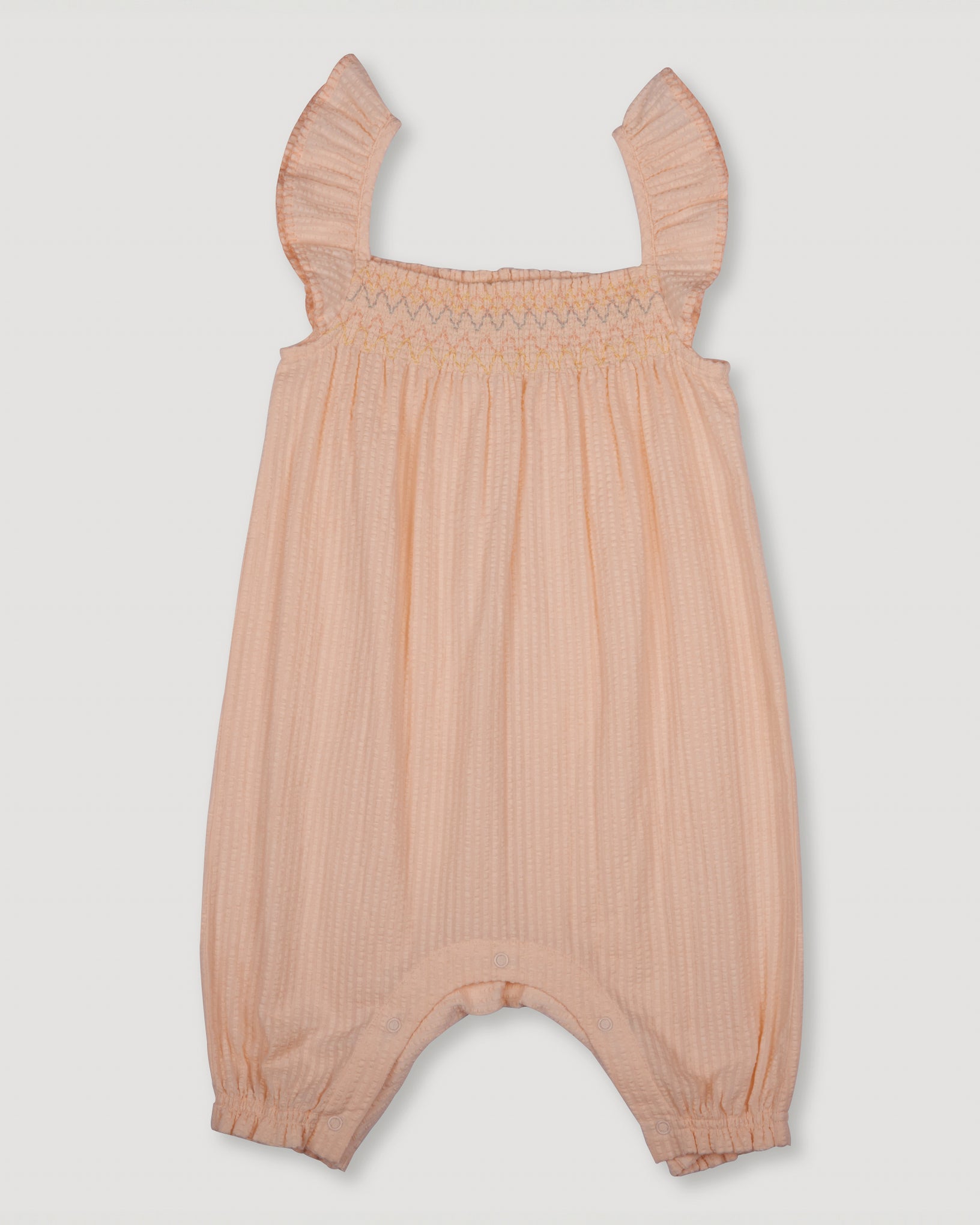 The Emma Baby Smocked Overalls Romper is the perfect blend of style and comfort for your little one. Crafted from soft cotton seersucker, this romper features a gentle texture and a breathable feel, ideal for warmer days. The smocked bodice offers a cute and snug fit, while the adjustable straps and relaxed silhouette ensure ease of movement. Whether it's a playdate or a family outing, this romper is a versatile and adorable choice.