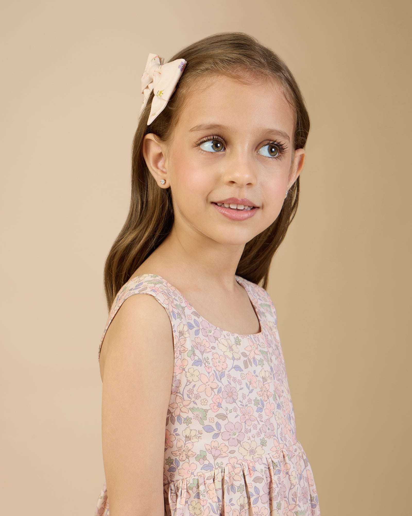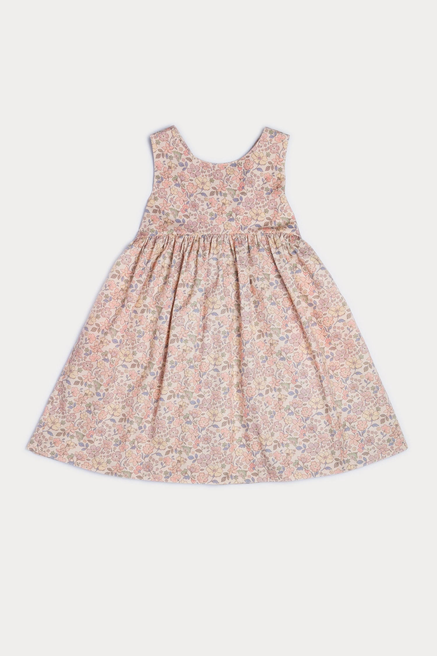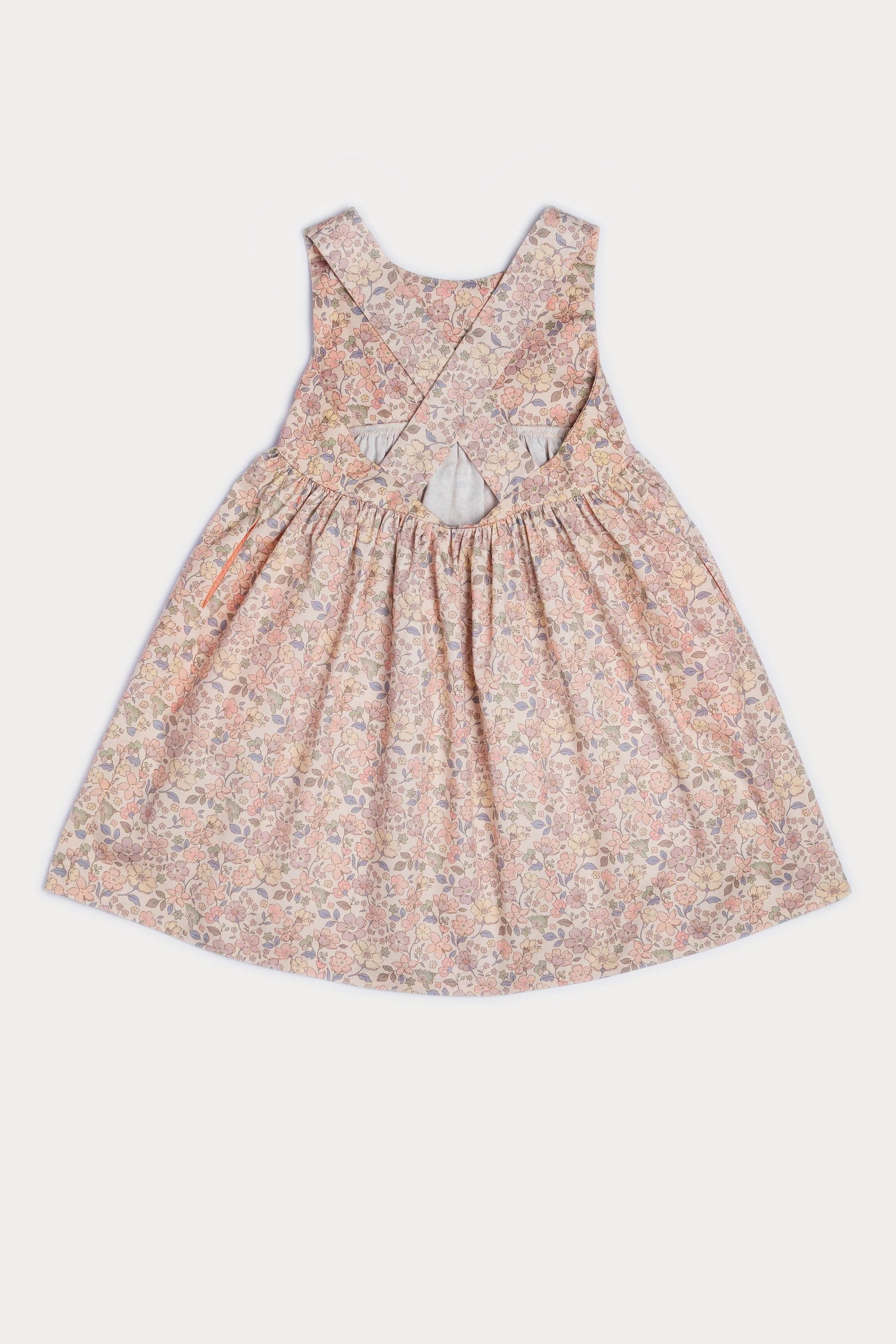 Soft cotton twill dances with a delightful floral print on the Emma Dress. A delicate round neckline adds charm, while criss-cross straps and a gently pleated skirt ensure effortless twirling for summertime adventures.