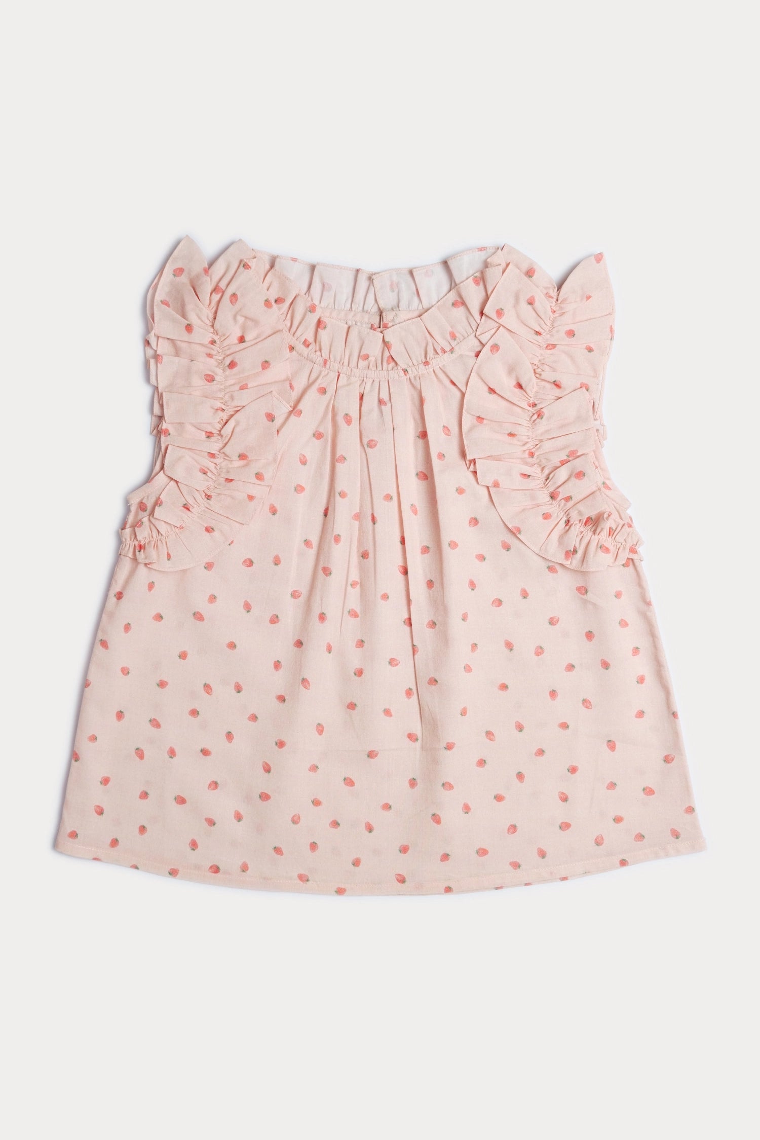 Crafted from soft cotton cambric, the Fiona Blouse features our delightful fraises print. The soft hue and lightweight fabric make it perfect for little ones with a sweet and playful spirit.