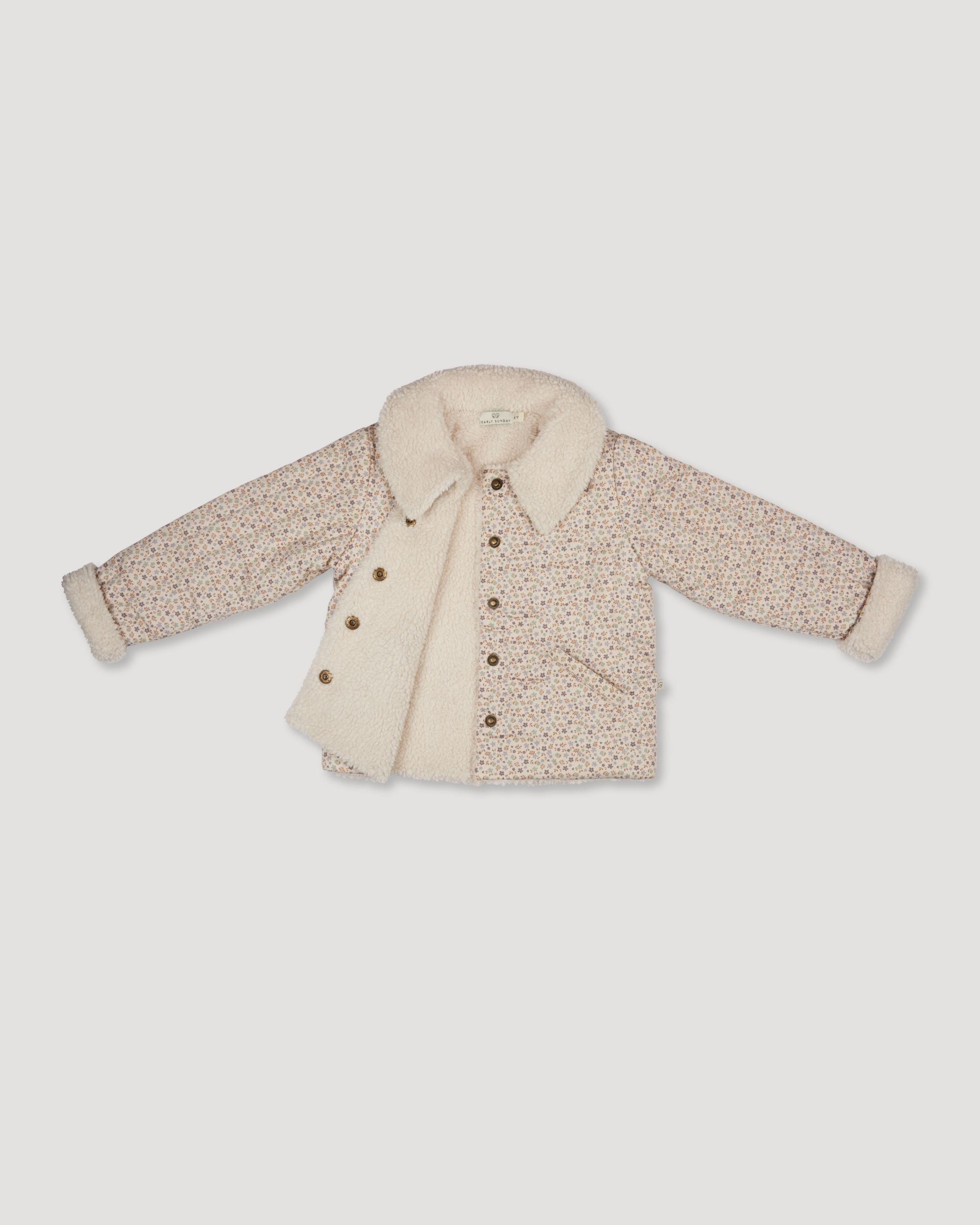 Sweetly floral and wonderfully snug, the Franka Jacket in Mini Flowers Print is a cozy outerwear essential for cooler days. Crafted from soft printed 30s Cotton Twill and fully lined with plush sherpa fleece, it’s the perfect blend of comfort and charm for your little one.