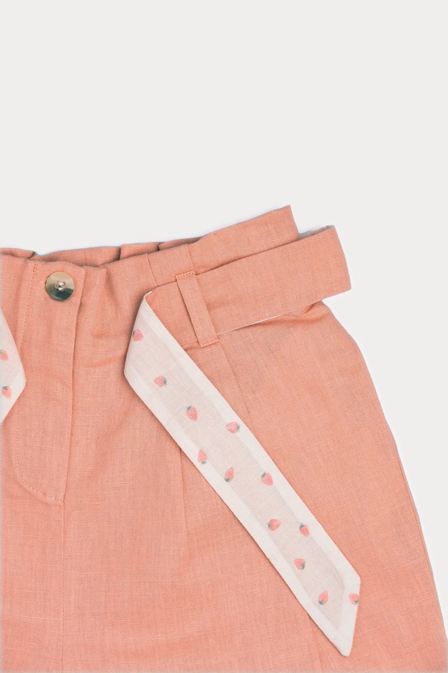Dreamy comfort meets playful charm in the Georges Shorts. Crafted from a soft blend of cotton and linen, these blush shorts feature a versatile belt with one printed side and one solid side, making it easy to style.