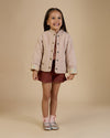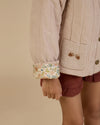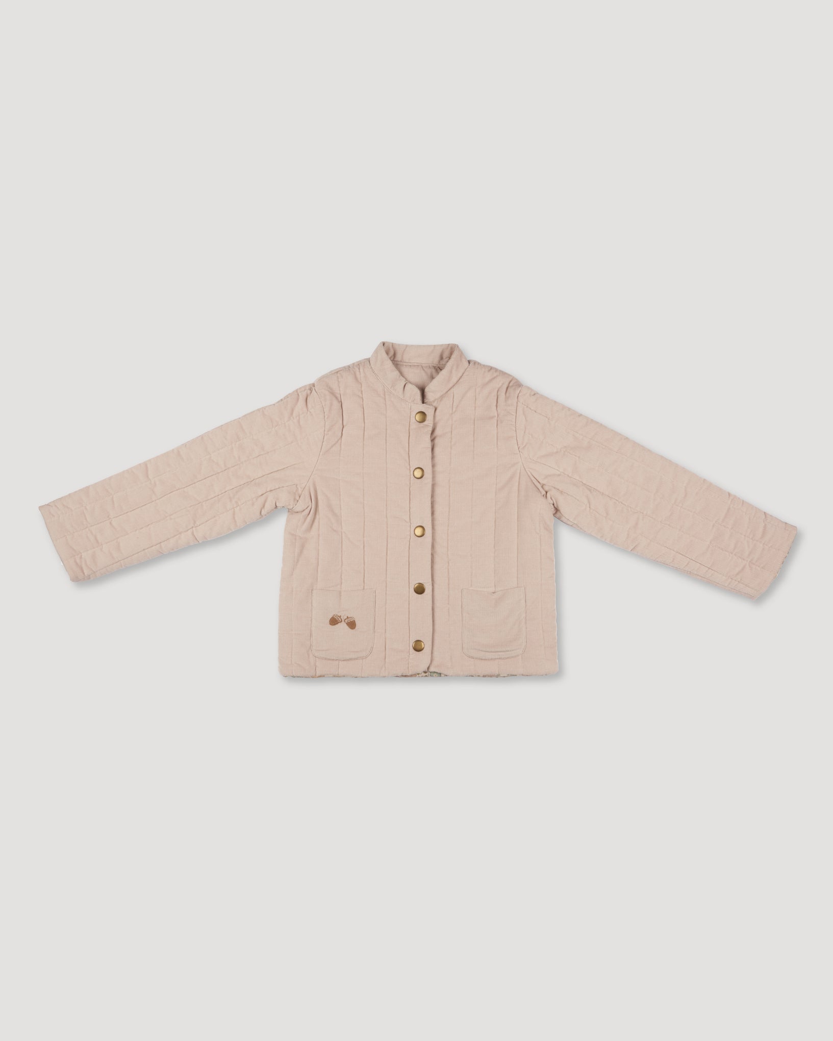 The Harriet Jacket, made from soft cotton corduroy in a classic beige shade, features charming acorn embroidery detailing and functional pockets. This jacket combines timeless design with cozy warmth, making it a stylish and practical addition to any wardrobe.