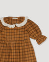 Full of nostalgic charm and gentle comfort, the Jacky Dress in our signature almond check is a timeless piece made for playful days and cozy moments.