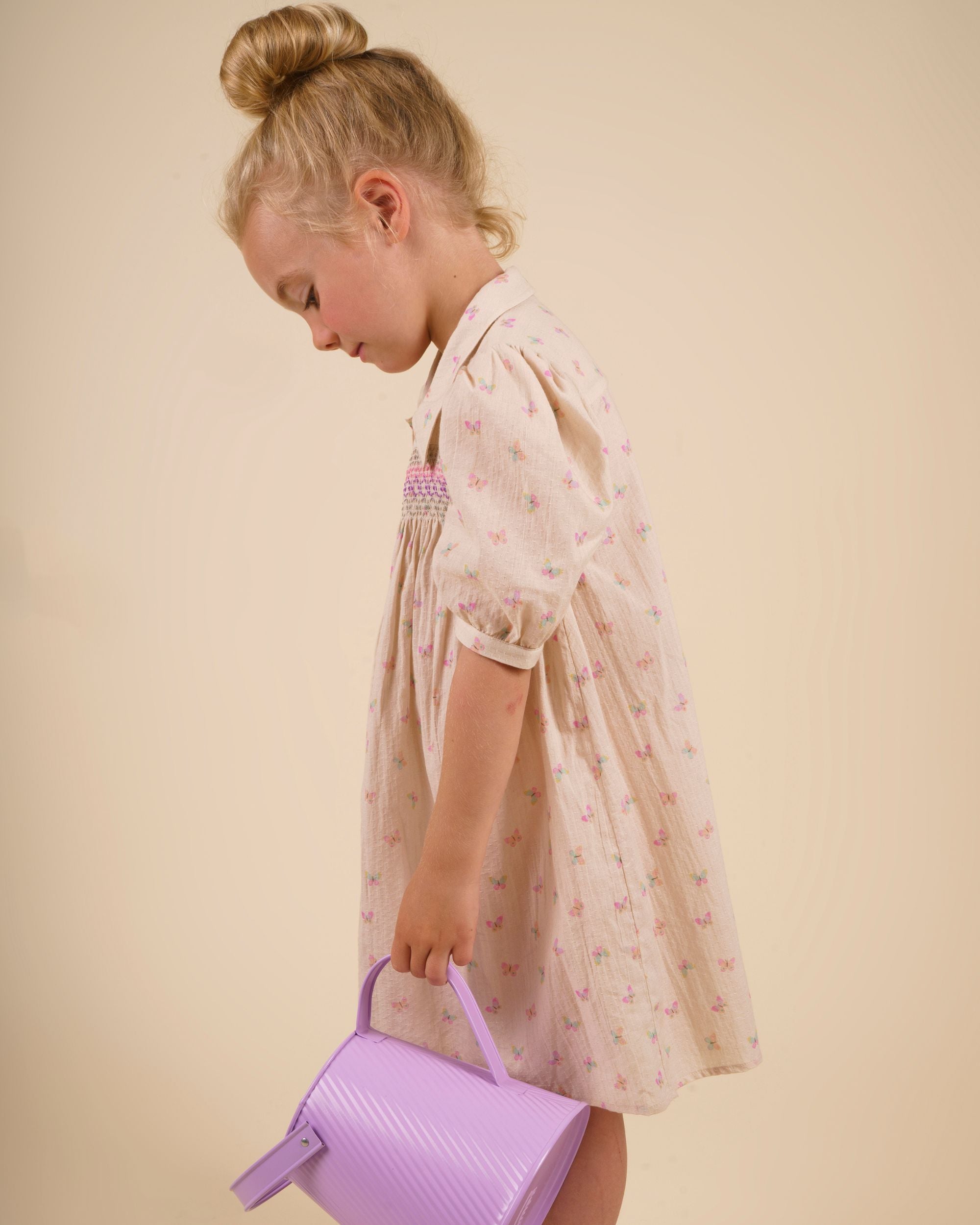 Jane Dress, a dreamy and playful style designed to add a touch of magic to your little one’s wardrobe. Crafted in delicate Printed Cotton Tiny Swiss Dobby with a charming Butterflies print, this dress combines airy comfort with soft, elegant detailing.