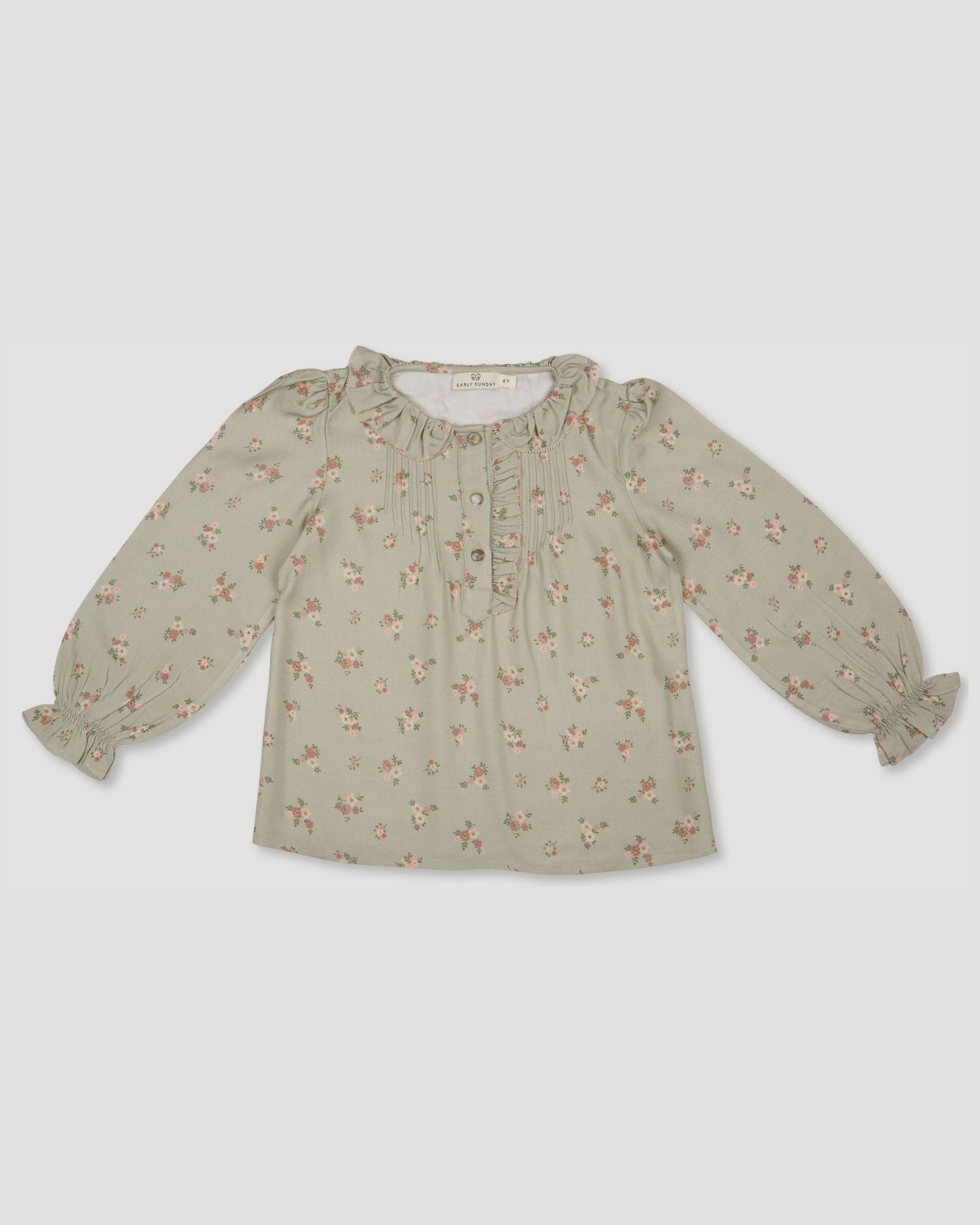 The Ditsy Bouquet Jade version of the Julianne Blouse is a sweet nod to vintage charm, made for layering and loving all season long.