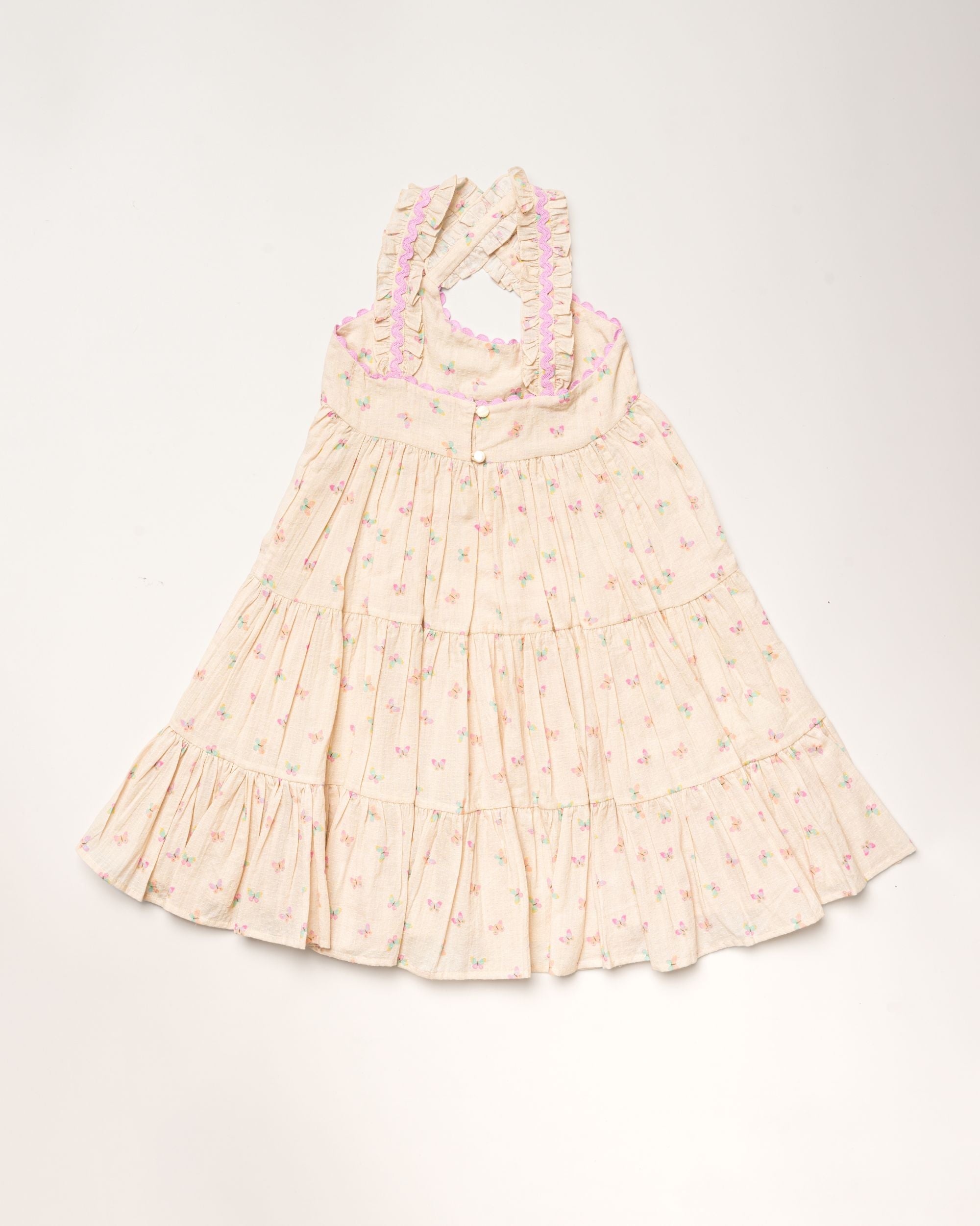 Laura Dress, a lighthearted and graceful style made for sunshine-filled days. Crafted in Printed Cotton Tiny Swiss Dobby with a charming Butterflies print, this dress blends airy texture with a soft, flowing silhouette for effortless comfort and movement.
