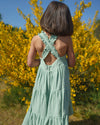 Laura Dress is crafted in 100% cotton double gauze in a refreshing mint hue. Light, breathable, and softly textured, it is designed for effortless comfort. Gentle gathers create a graceful, flowing silhouette, while the cross-back detail adds a delicate, thoughtful finish.