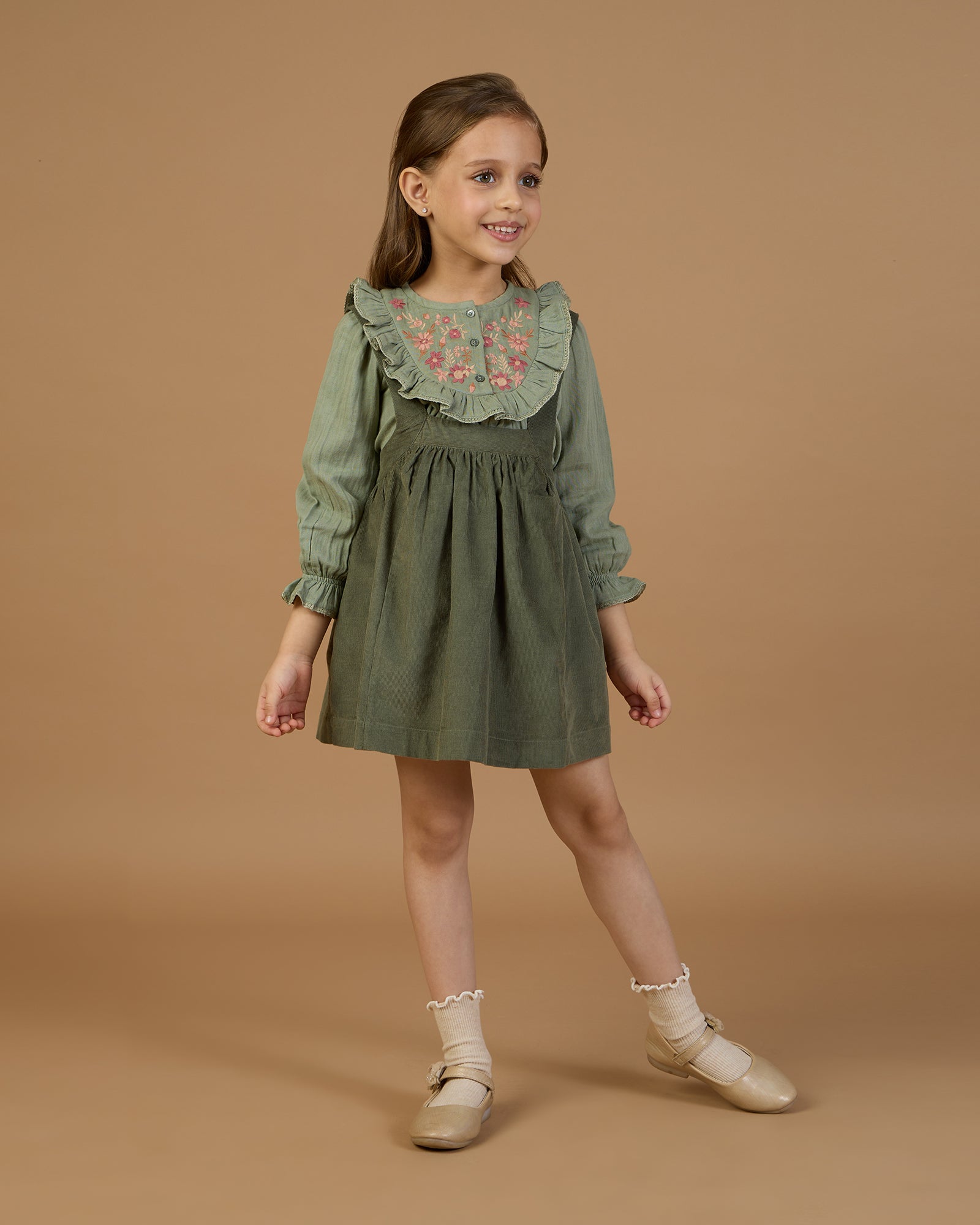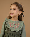 The Lauren Blouse, crafted from soft cotton double gauze, features beautiful floral embroidery on the yoke, adding a touch of delicate charm. In a serene halcyon green shade, this blouse offers a perfect blend of style and comfort for any occasion.