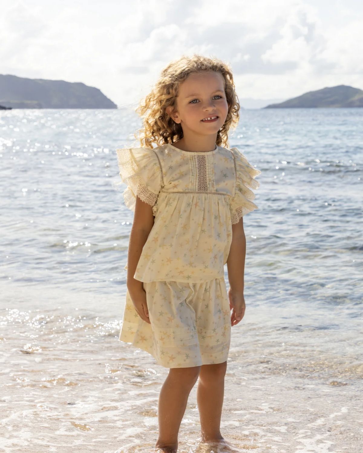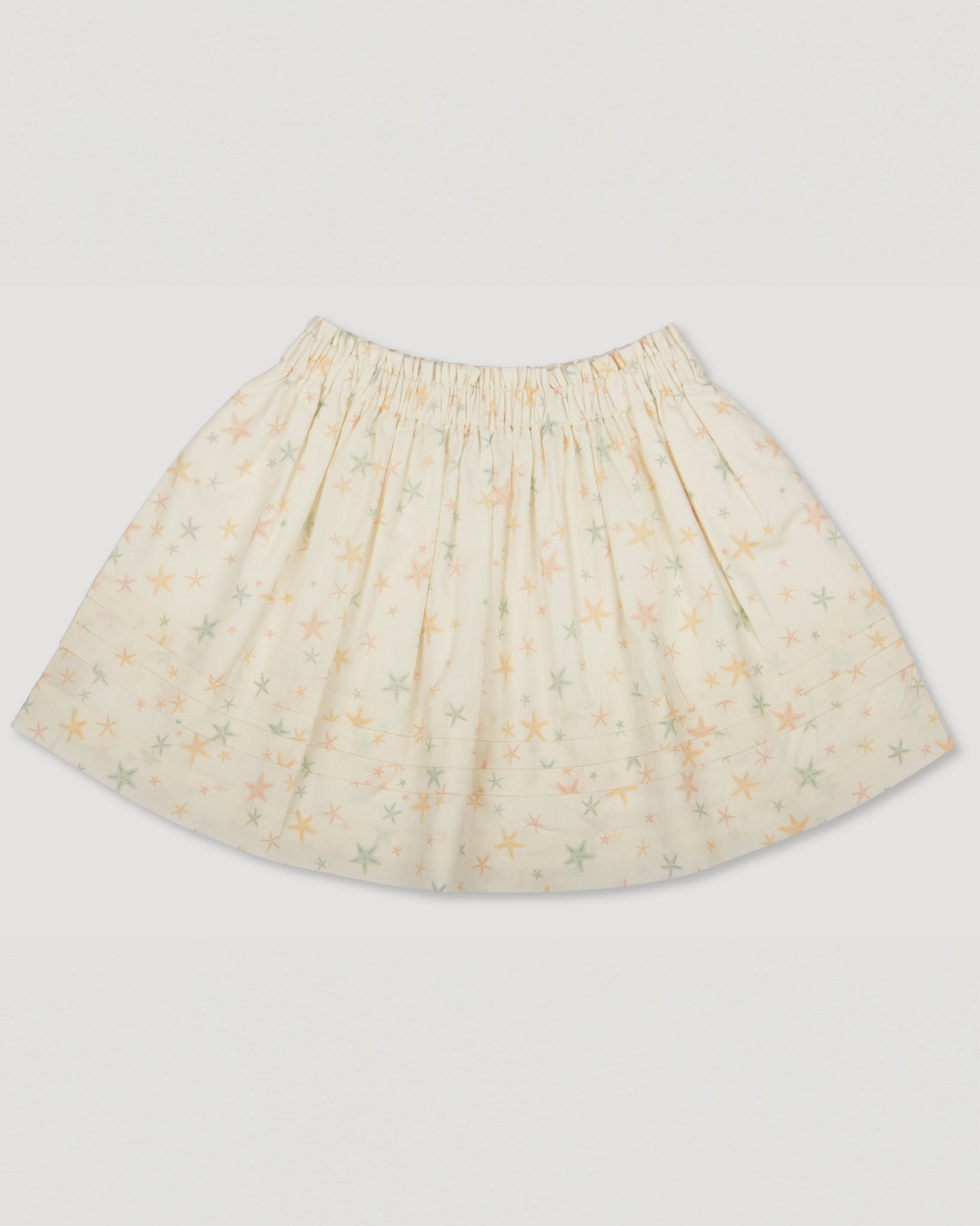 The Luna Skirt in Printed Cotton Cambric - Star Fishes is a playful and stylish piece, crafted from soft cotton cambric with a vibrant star fish print. Designed with a flattering silhouette and easy fit, this skirt effortlessly blends comfort and charm, making it a perfect choice for casual outings or special occasions.