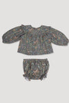 The Charlotte Baby Dress & Bloomer set, crafted from smooth printed cotton satin, features a beautiful autumn garden print in a refined greyish blue. This charming dress is accompanied by matching bloomers, making it a perfect outfit for any occasion. Designed for comfort and style, it offers a lightweight feel with gentle gathers and an easy fit that allows freedom of movement.