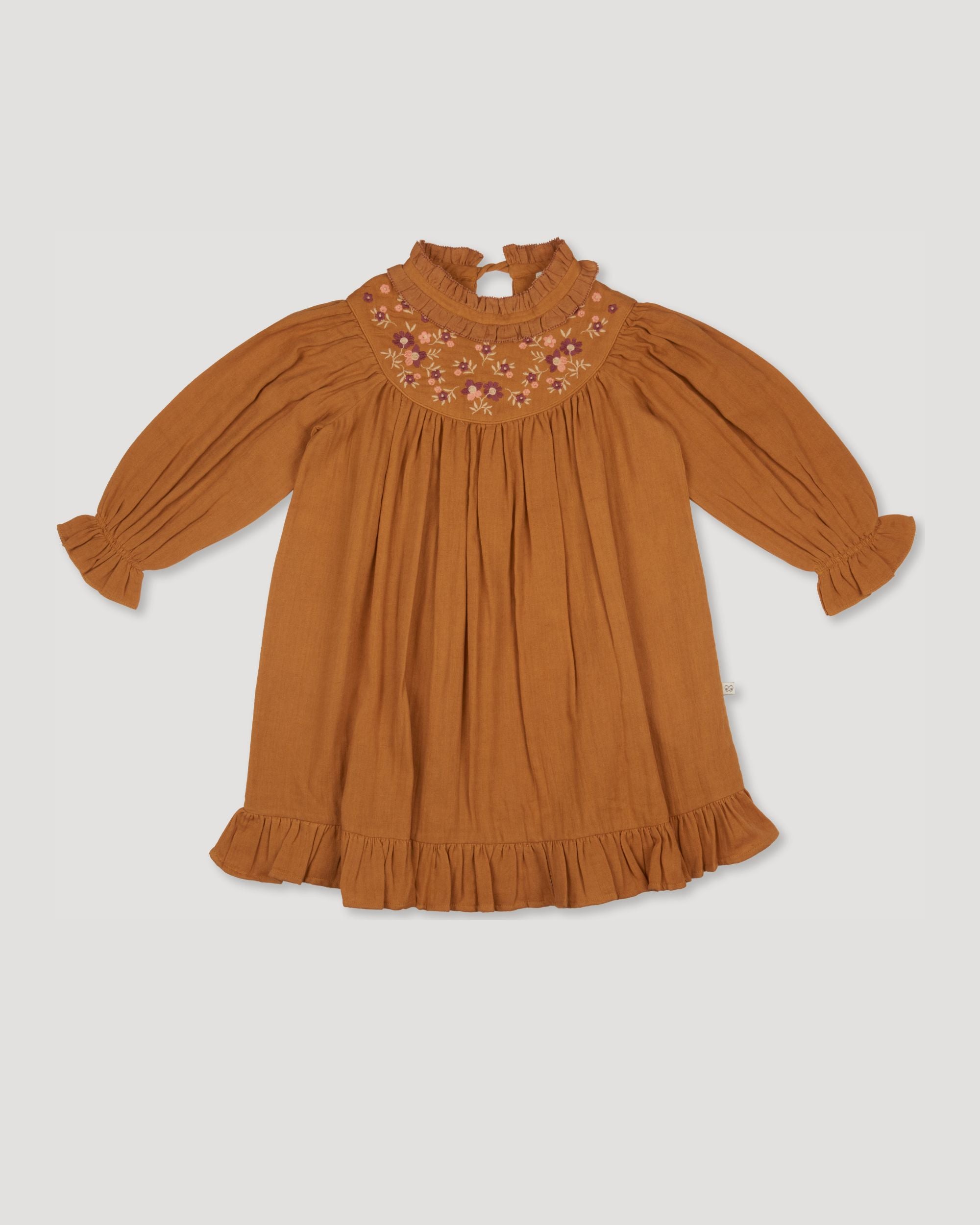 The Penelope Dress in Almond offers the perfect blend of earthy charm and soft sophistication. Made from breathable cotton double gauze, it’s delightfully lightweight yet cozy, ideal for everyday comfort and seasonal layering.