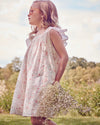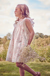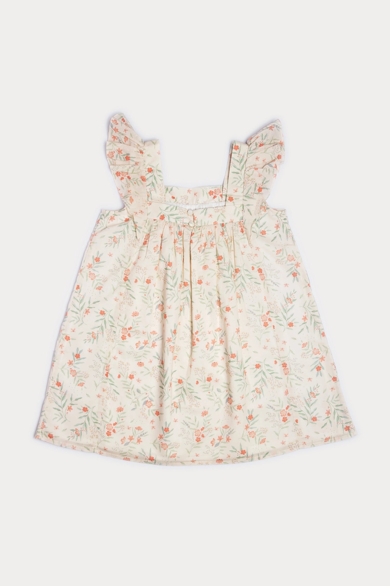 A fine dress made in our Meadow flower print brings dreams to life, crafted from cotton cambric. Ruffled sleeves and a square neckline add a touch of whimsy to this charming design.