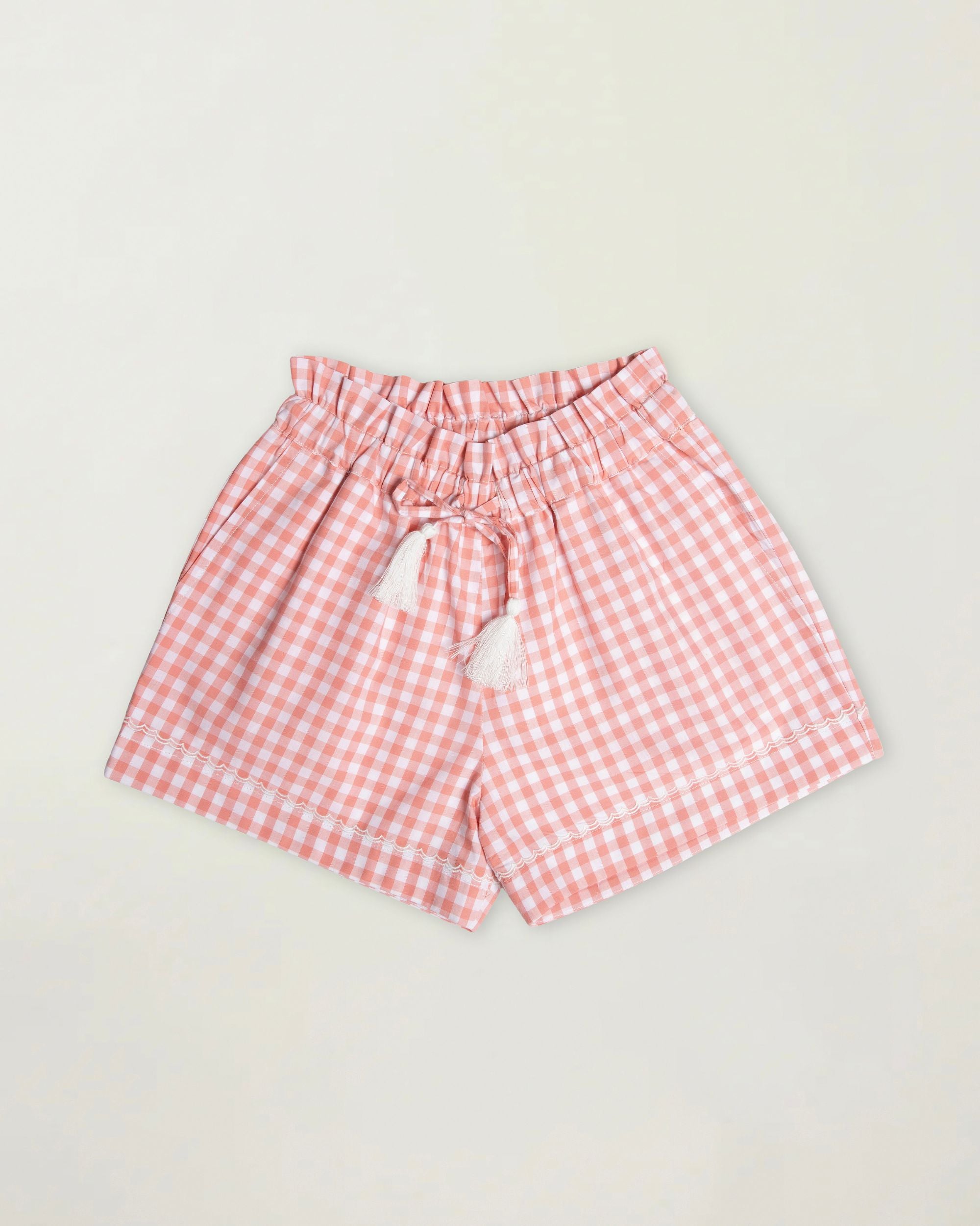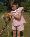 Roman Short, a cheerful everyday staple designed for comfort and carefree play. Crafted from 100% Cotton in a classic Gingham Check, this pair comes in a soft Peony shade that feels both timeless and fresh.
