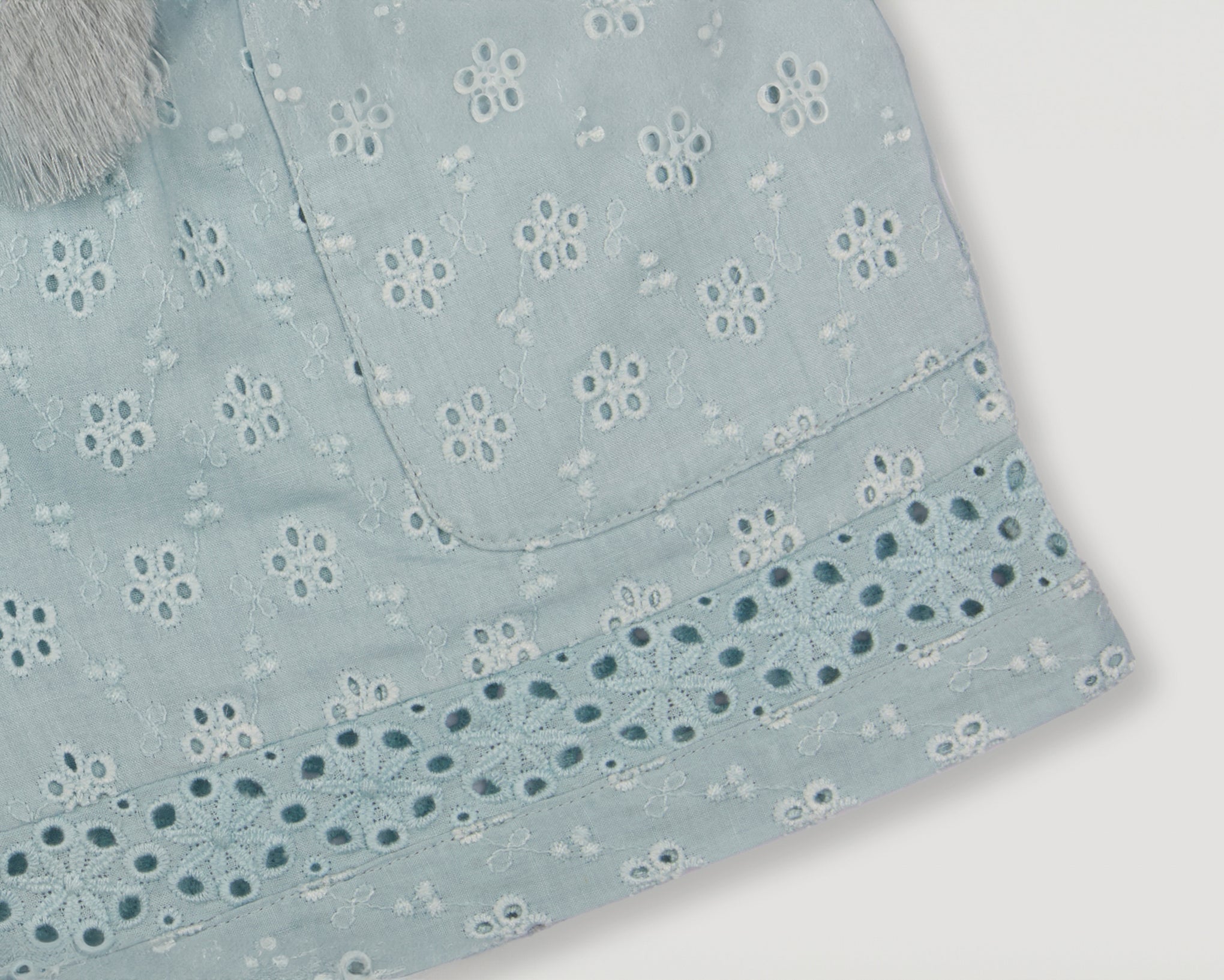 Material: 100% cotton with all-over eyelet embroidery – a soft and breathable fabric with delicate detailing.