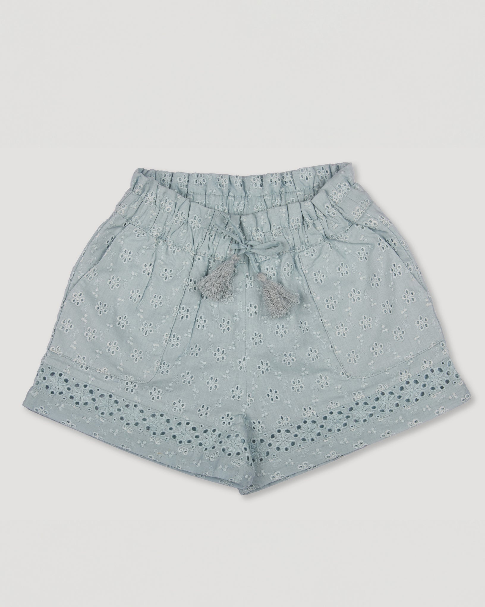The Roman Shorts are a timeless essential, crafted from soft cotton Schifflie with all-over eyelet embroidery. Designed for both style and comfort, these shorts feature an elasticated waistband for a flexible fit and a relaxed silhouette for effortless movement. Perfect for warm days, they pair beautifully with blouses, tops, or light layers.
