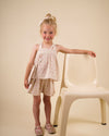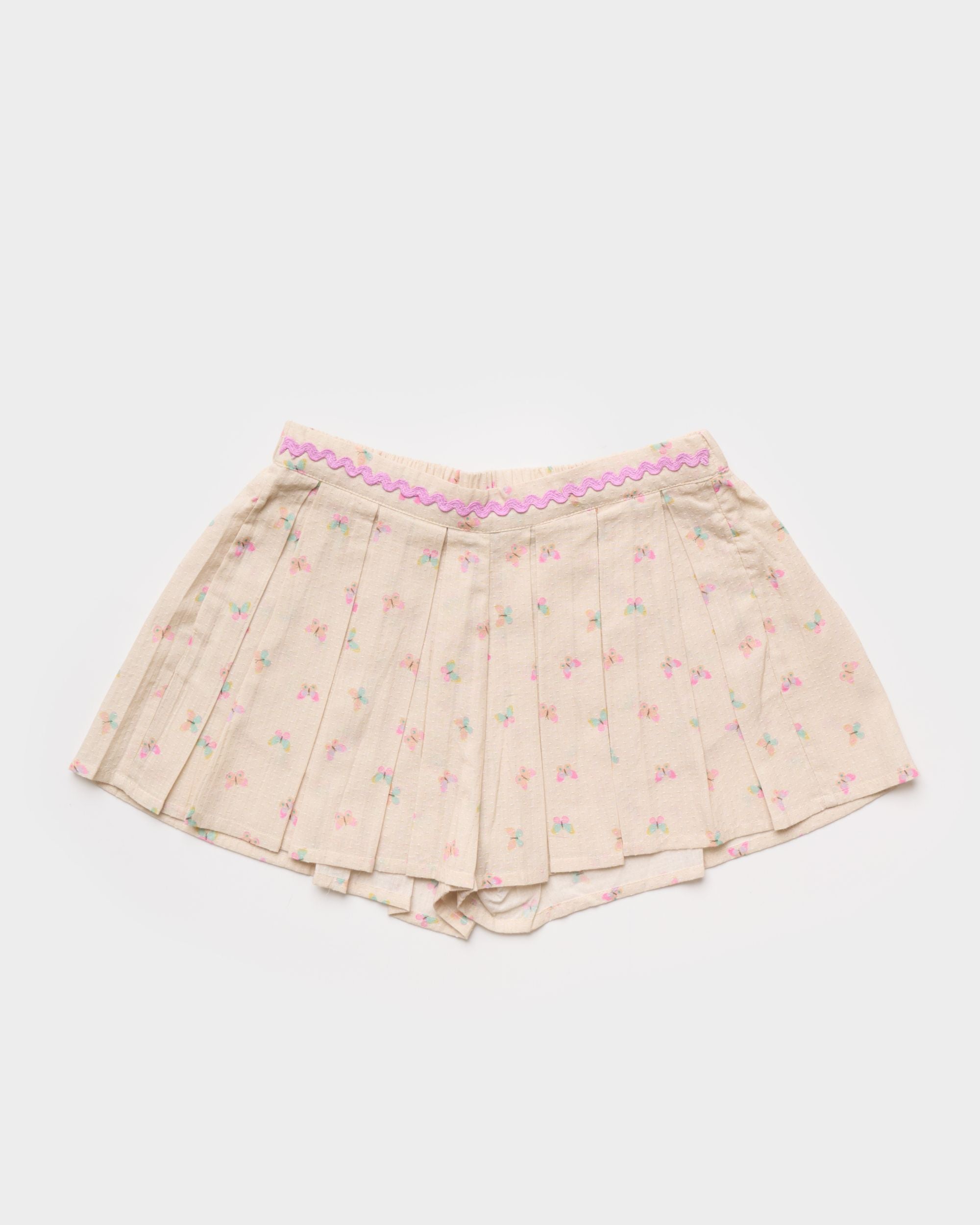 Solal Skort, a playful and charming piece crafted in Printed Cotton Tiny Swiss Dobby with a delightful Butterflies Print. Designed to offer the look of a skirt with the comfort and coverage of built-in shorts, this skort blends everyday elegance with playful practicality, making it a favourite for little ones’ adventures and special moments.