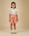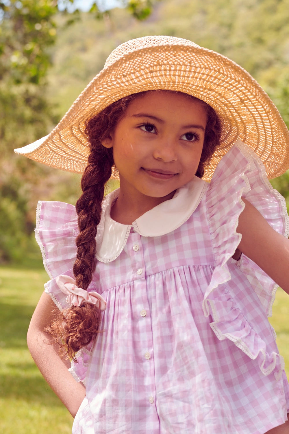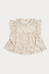 A tapestry of delicate meadow flowers print adorns the Suzanne Blouse, which is crafted from the softest cotton fabric. Featuring flutter sleeves along with a ruffled neckline creating the ideal look for your little explorer.